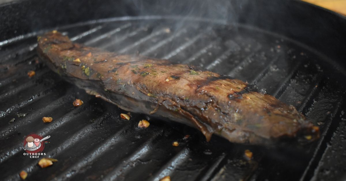 Grilling venison tenderloin is much the same as pan frying except you get a better sear.
